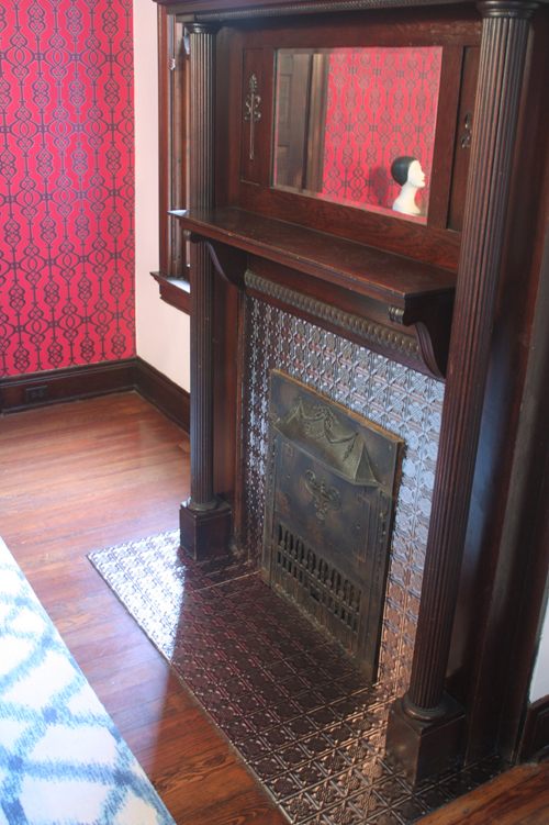 I like the shiny aspect of the tile. Your makeover is perfect for the room and the period. Too bad you can't use the fireplace.